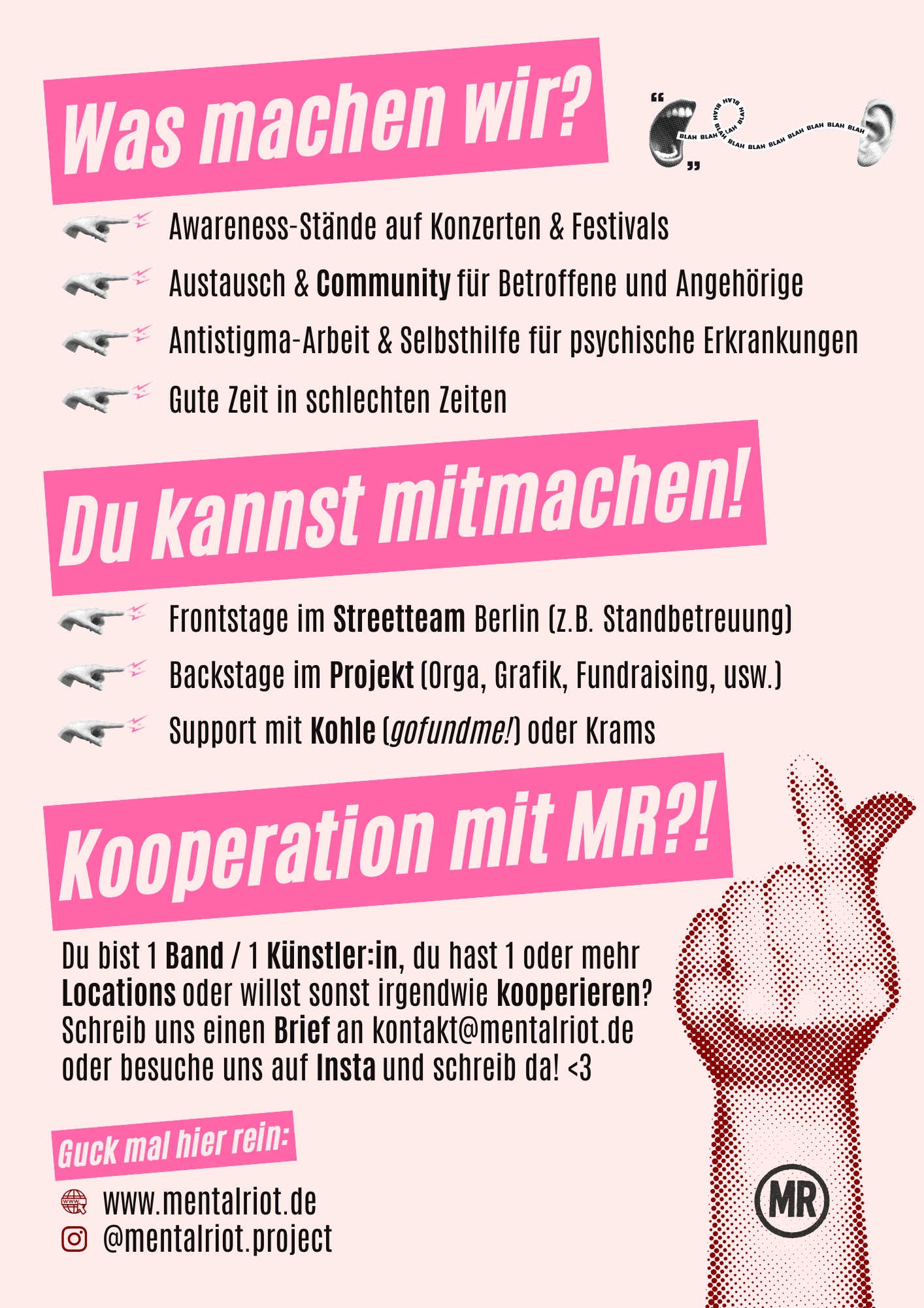 Wir schätzen Dein Interesse an Mental Riot sehr und freuen uns, dir mit Infomaterial wertvolle Unterstützung bieten zu können.
